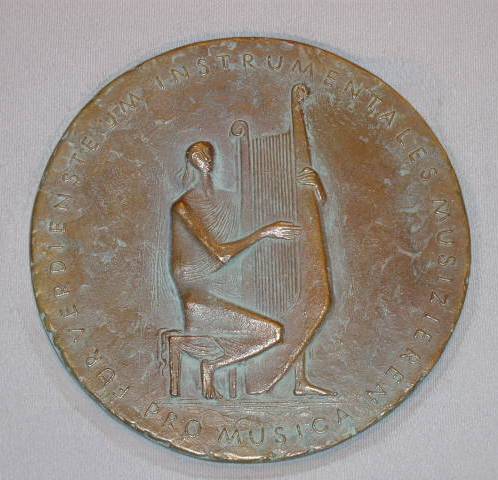 Die Plakette zeigt auf der Vorderseite eine Musizierende mit Lyra und die Inschrift PRO MUSICA für Verdienste um instrumentales Musizieren; die Rückseite zeigt den Bundesadler. Die Plakette ist eine nicht tragbare Auszeichnung.